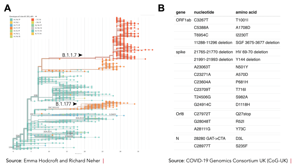 - Andrew Rambaut, Nick Loman, Oliver Pybus, Wendy Barclay, Jeff Barrett, Alesandro Carabelli, Tom Connor, Tom Peacock, David L Robertson, Erik Volz, COVID-19 Genomics Consortium UK (CoG-UK). Preliminary genomic characterisation of an emergent SARS-CoV-2 lineage in the UK defined by a novel set of spike mutations. https://virological.org/t/preliminary-genomic-characterisation-of-an-emergent-sars-cov-2-lineage-in-the-uk-defined-by-a-novel-set-of-spike-mutations/563 (2020).